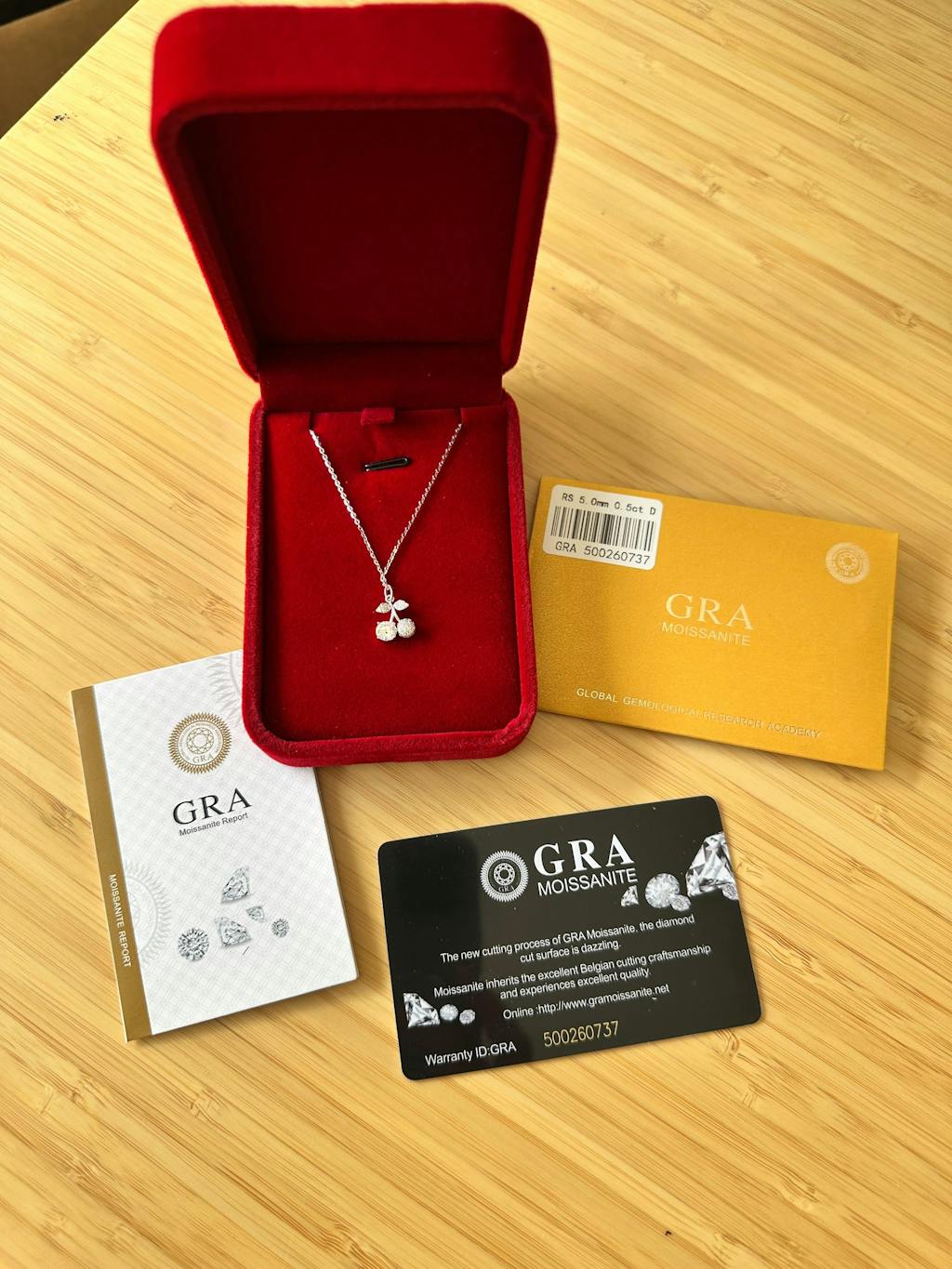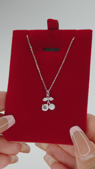 This stunning Cherry necklace features a hand-selected Moissanite stone, known for its "fire" and extraordinary light-bending properties. Set in a timeless 925 sterling silver mount, it offers a luxurious look that transitions effortlessly from morning coffee to candlelit dinners. It’s more than just a necklace; it’s a piece of everyday magic.